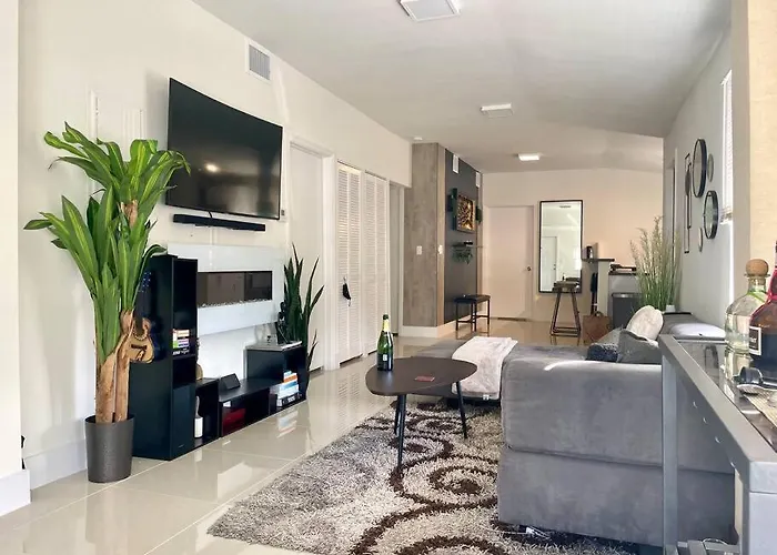Miami International airport can be reached within 10 minutes drive, and natural attractions like the African Heritage Cultural Arts Center are 2.4 km away. The Casino Miami can be found approximately 5 minutes by car from the accommodation, and the Lock & Load Museum is approximately a 20-minute ride away. Positioned within a 7-km distance of the St. Raymond of Penafort Catholic Church|St. Raymond of Penafort Catholic Church, Modern Home W Jacuzzi Near Wynwood-Design District-Mia Airport is popular among both worshippers and tourists.